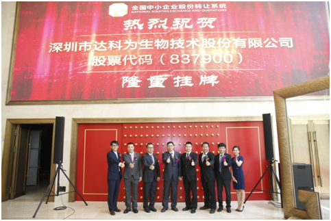 今天,達(dá)科為股票(代碼: 837900)正式登陸新三板,在萬眾矚目下,我們一起期待公司在生物行業(yè)中轟轟烈烈的新征程!同事們,我們一起加油!